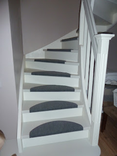 I matsalen satte jag upp nya gardiner och efter det tog jag foto, ännu hänger där två julstjärnor och i två av fönstren finns ljusstakar, men de kom inte med på fotot. I trappan valde jag att lägga trappmattor, mest med tanke på Benjamins klättrande. De har dock överträffat alla våra förväntningar och fyller sin uppgift mer än bra för hela familjen. Grinden använder vi inte alls åt Benjamin, och själv är det skönt att inte behöva vara rädd för att halka i trappan. De är dessutom varma att gå på mitt i natten när man tassar upp till wc:n. Rekommenderar!